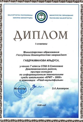 Габдрахманов Ильдус - призер республиканского конкурса "КРИТ-2008" | |